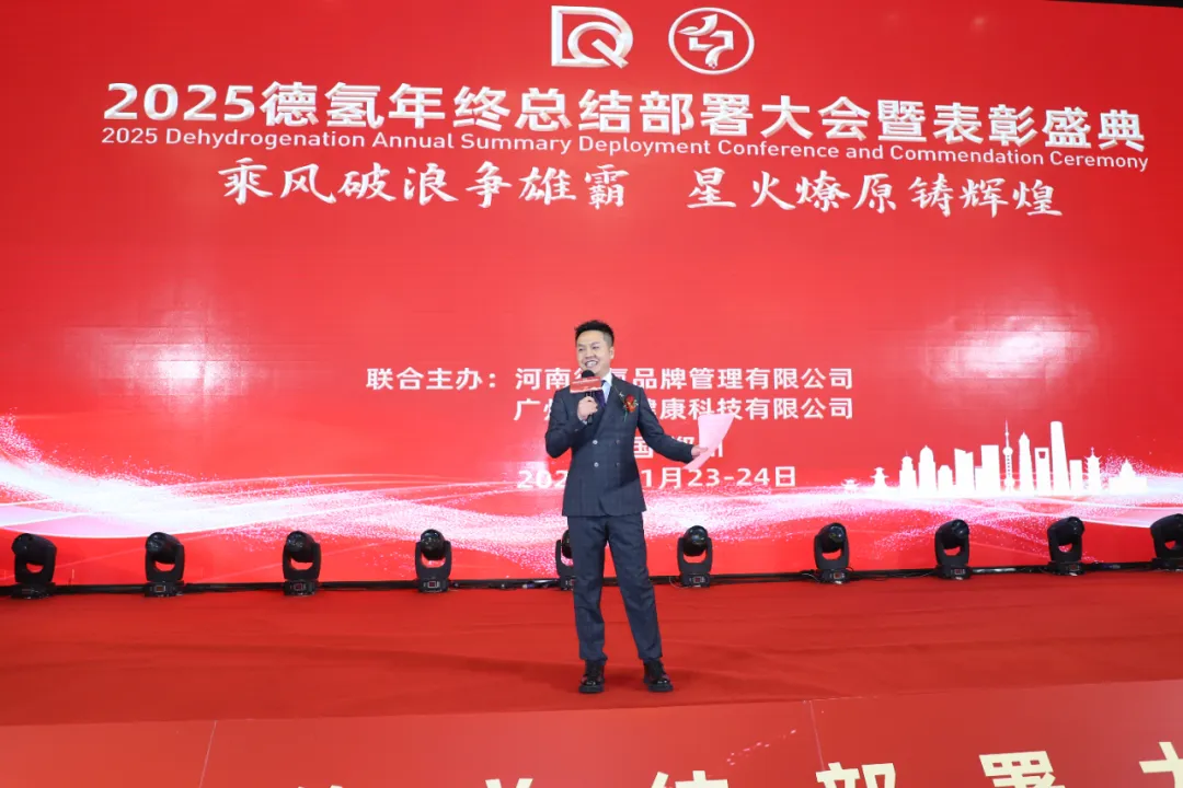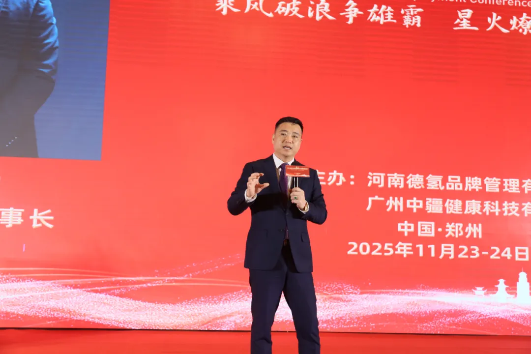 在会议尾声,德氢董事长邵光辉以振奋人心的讲话,为公司未来擘画了宏伟蓝图,进行了全方位的战略指导。他强调,身为健康产业的践行者,德氢将坚定贯彻新发展理念,以蓬勃的朝气、无畏的勇气和源源不断的创新活力,在推动健康产业高质量发展的道路上披荆斩棘、逐光而行!