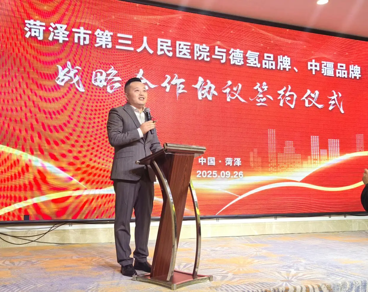 孔波表示:“德氢品牌始终秉持‘坚持科技创新,服务健康中国’的企业使命,深耕氢医学技术研发与成果转化。我们坚信技术是核心驱动力,依托自研先进的PEM电解技术,打造出多款安全、高效的高端氢氧机。此次与菏泽市第三人民医院的战略合作,是科技与医疗的深度融合。我们期待未来与三院在氢医学临床应用研究、康复领域技术升级、专业人才交流等方面开展全方位合作,通过联合科研、设备升级等形式,为鲁西南地区患者带来更优质的康复选择。”