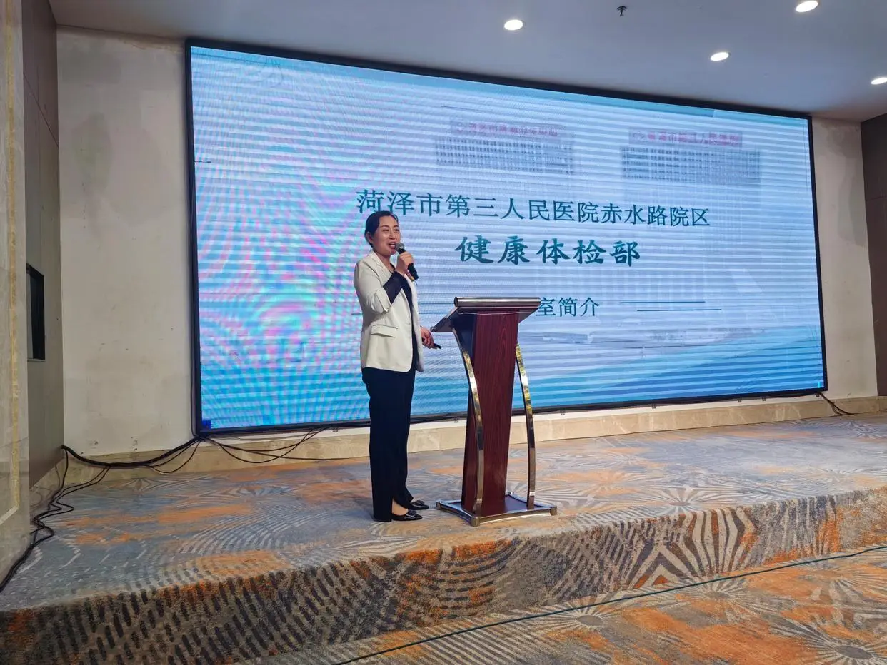 随后,菏泽市第三人民医院魏冉敬、姜会萍两位代表登台,详细介绍了医院近年来的发展成果以及特色健康服务套餐内容。